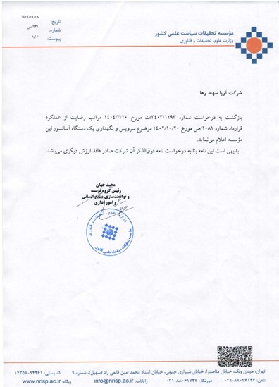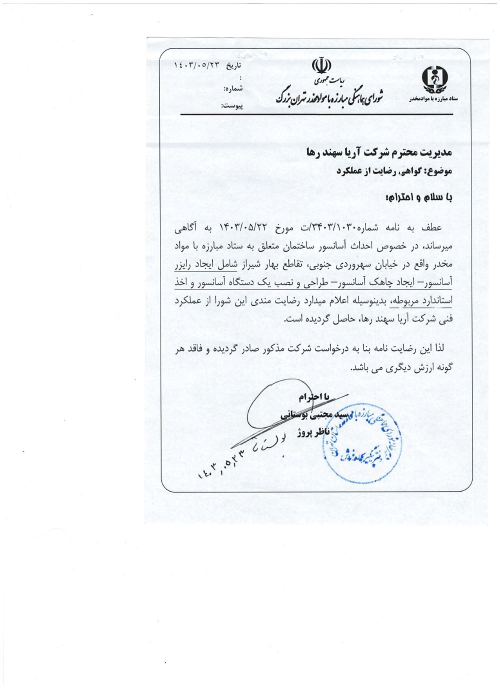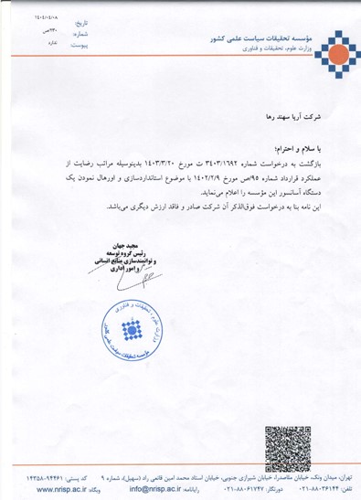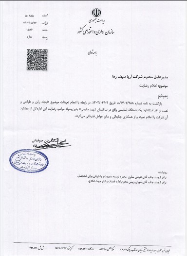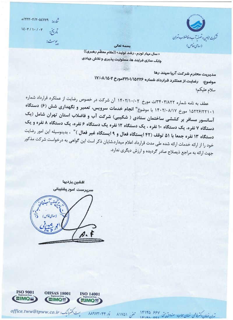 رضایتنامه رسمی مشتریان سازمانی آریاسهندرها